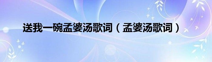 大家好,送我一碗孟婆汤歌词,孟婆汤歌词很多人还不知道,现在让我们一起来看看吧!
